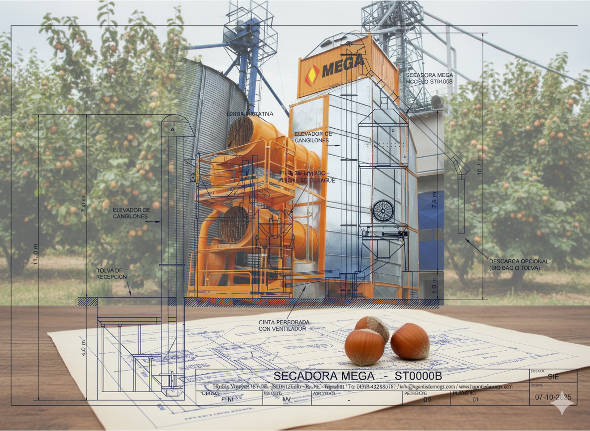 En el proceso de secado del avellano europeo, la eficiencia lo es todo. Alcanzar una humedad final entre 6% y 8% sin dañar la calidad del grano requiere control, precisión y una ingeniería que maximice el flujo de aire y el uso de energía.